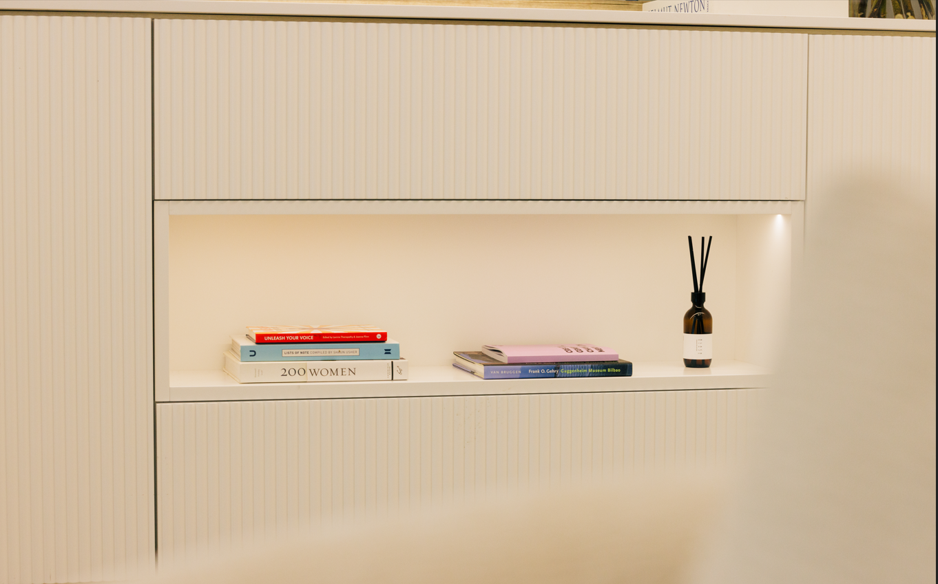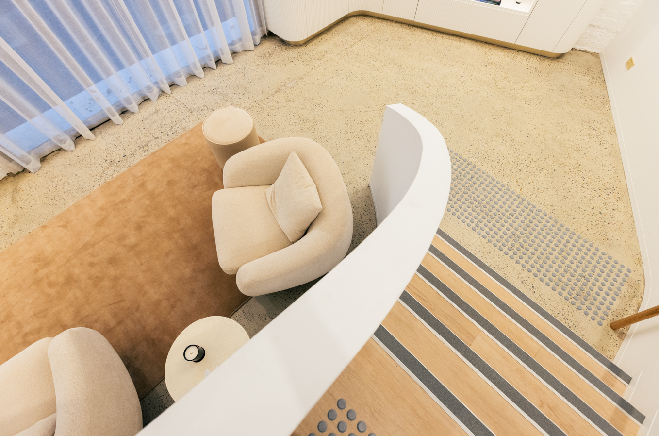 With its striking 4-metre-high, double-height shopfront windows, the building made an immediate statement of openness, light, and transparency. But it was the interior that needed to speak a subtler, deeper language: one of safety, respect, and calm. Hema couldn’t define it exactly, but she knew what it wasn’t: harsh lighting, sterile vinyl, and impersonal interactions. She wanted a space that felt not clinical but human.