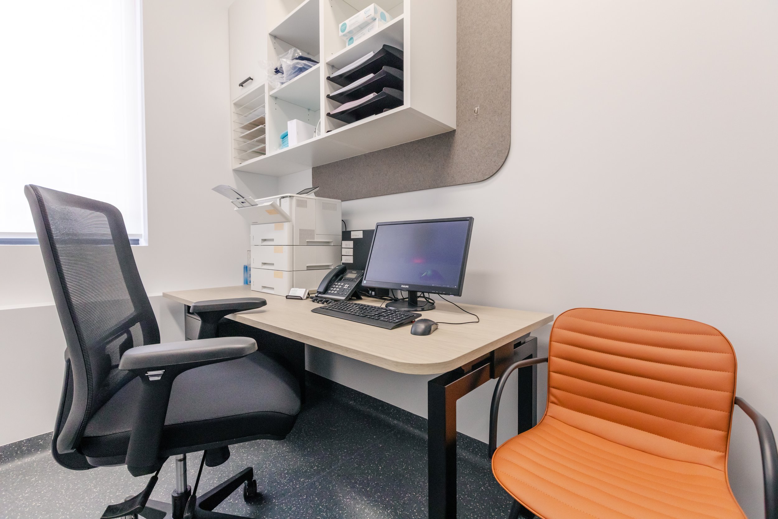 While highly practical, this fitout doesn’t sacrifice visual appeal. We incorporated subtle timber accents, warm textures, and soft lighting to offset the clinical palette, ensuring the space feels polished but not cold. It’s a space that supports confidence in care while keeping the user experience front and centre.