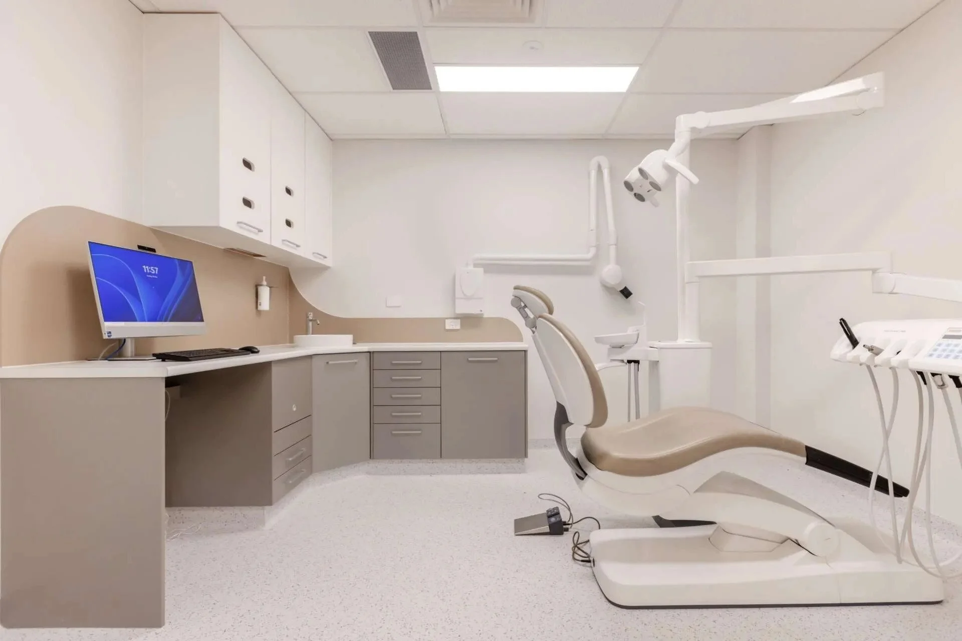 This Canberra dental fitout balances the demands of dental technology with a boutique, wellness-oriented aesthetic. Custom joinery, sound insulation, and discreet storage keep the space highly functional without feeling clinical or cold.