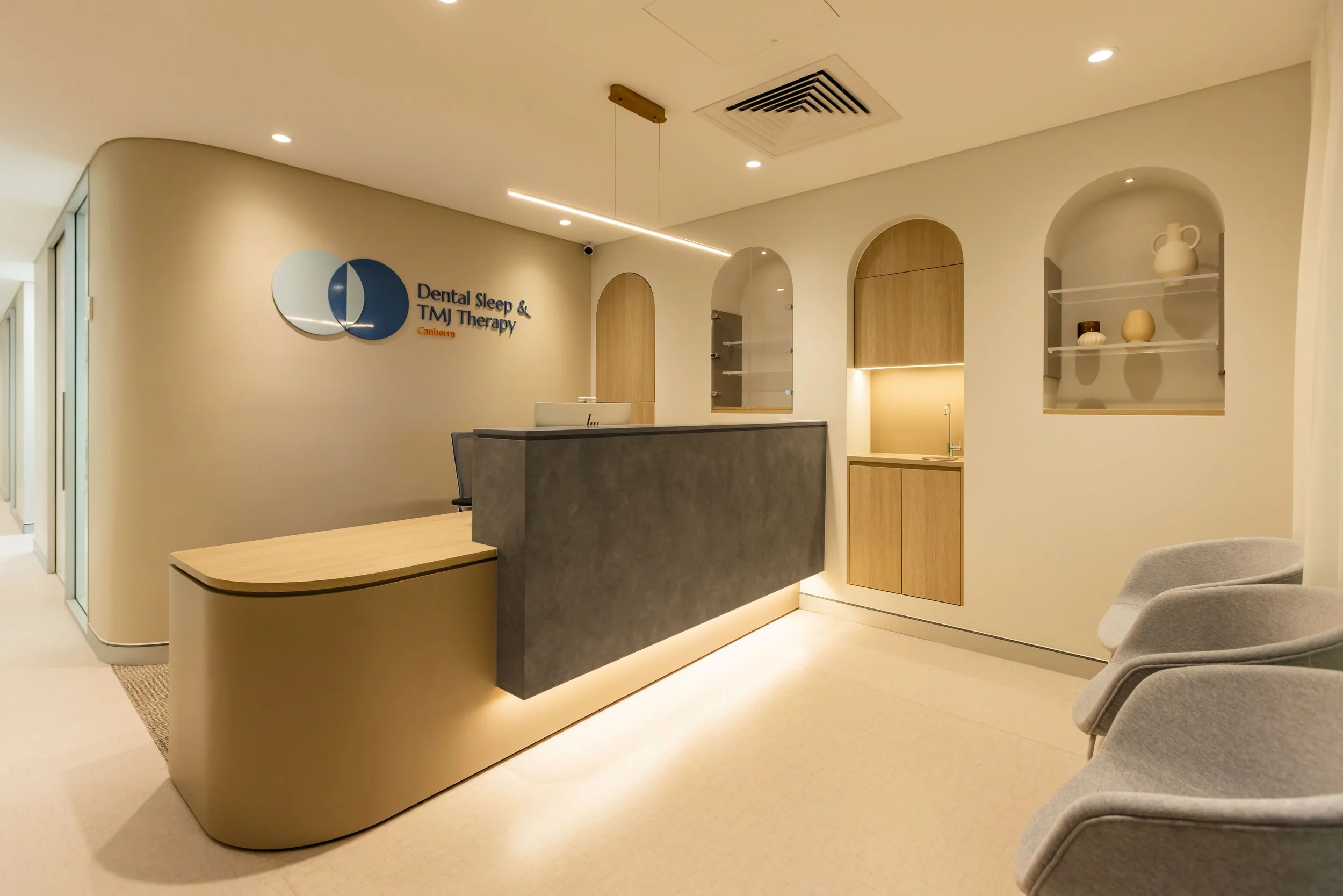 Dental Sleep & TMJ Therapy is a specialist clinic in Canberra dedicated to the diagnosis and treatment of sleep disorders, TMJ dysfunction, and orofacial pain. Their approach is deeply focused on restoring comfort and quality of life for patients — which meant the fitout needed to feel professional, precise, and most importantly, calming.
